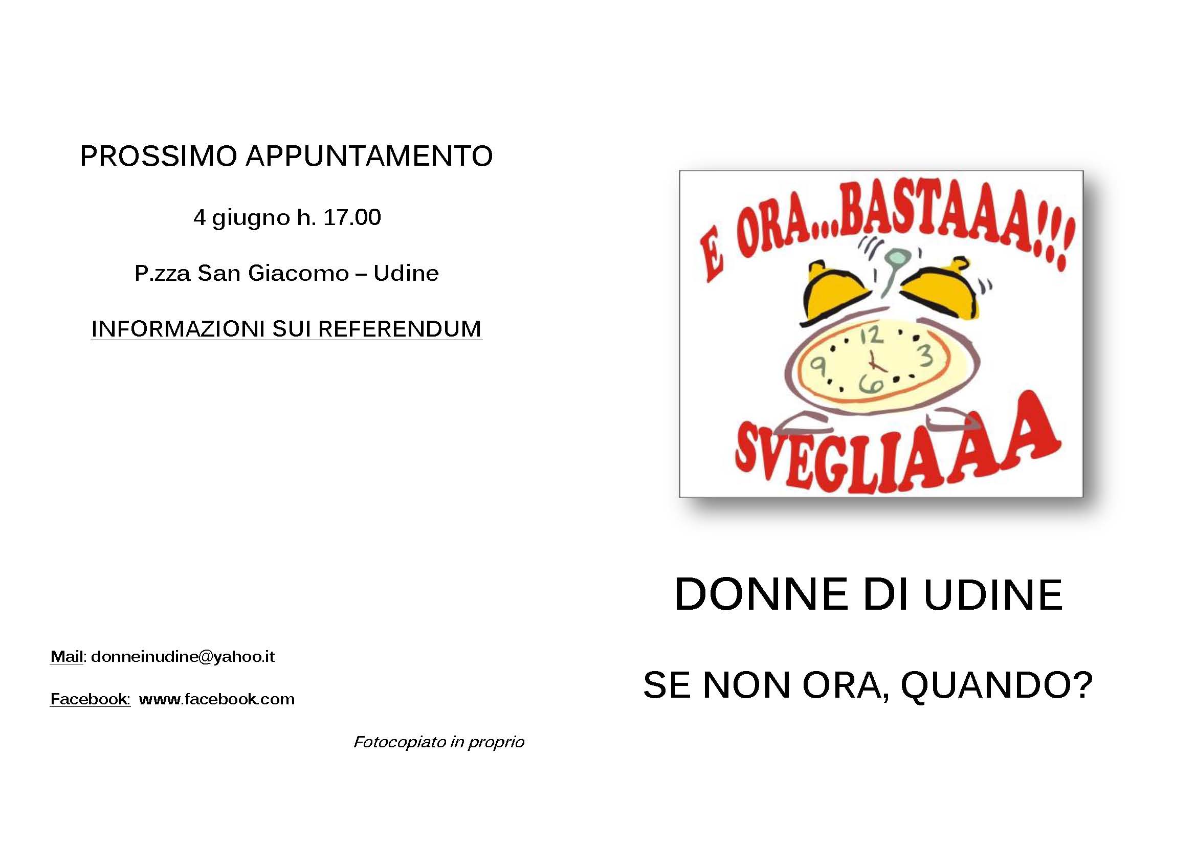 Le ‘DONNE DI UDINE, SE NON ORA QUANDO?’ organizzano un volantinaggio in piazza per il giorno 14 maggio alle ore 16.30 presso la chiesa di san Francesco e palazzo Morpurgo.
